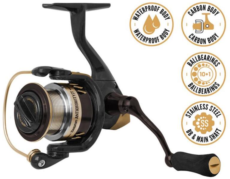 A Delphin ANTIGRAVITY egy prémium minõségű rendkívül könnyű orsó, melyet az igényes horgászok is értékelni fognak. A rendkívül alacsony tömeget a karbon test és a könnyített fém dob biztosítja. Az ANTIGRAVITY kompakt méreteinek köszönhetõen ideális társ pergetésnél, valamint úszós horgászatnál, vagy light feederezésnél. A test belsejében egy pontosan kialakított, 5,2:1 áttételű mechanizmus található, amely a 10+1 csapágy rendszerrel biztosítja a nagyon sima futást. A csapágyak ráadásul rozsdamentes anyagból vannak, így biztosított a hosszú élettartam melyhez még hozzájárul a vízhatlan orsó test. A fém hajtókar ráadásul egyenesen belecsavaródik az orsótestbe, így nem keletkezik semilyen mozgás. A hajtókar kényelmes fogását a puha EVA hab biztosítja. A karbon alátétes elsõ fék, lehetõvé teszi a precíz fékerõ beállítást. A sekély könnyített dob dobóéllel lehetõvé teszi a pontos dobásokat. Az ANTIGRAVITY minden méretéhez szükség szerint vásárolható alumínium pótdob.